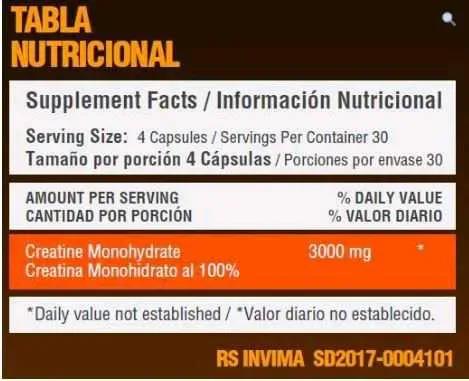 CREATINE MONOHYDRATE 3000MG X 120 CAPSULAS