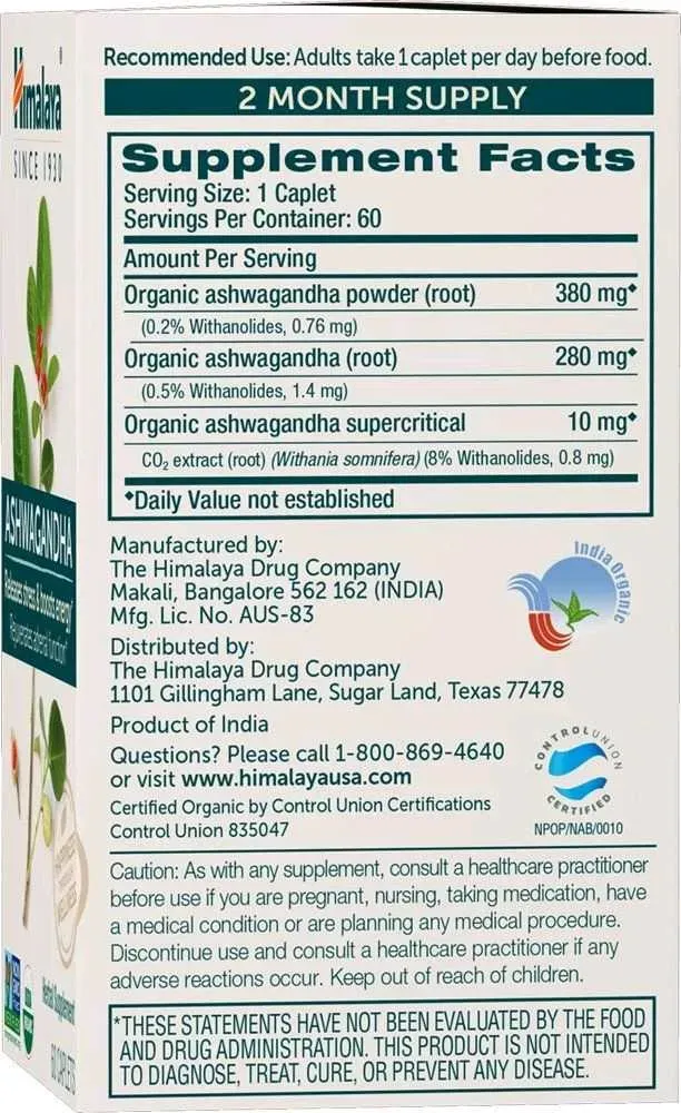 Ashvagandha Himalaya Pure Herbs – General Wellness en presentación de 60 tabletas.
