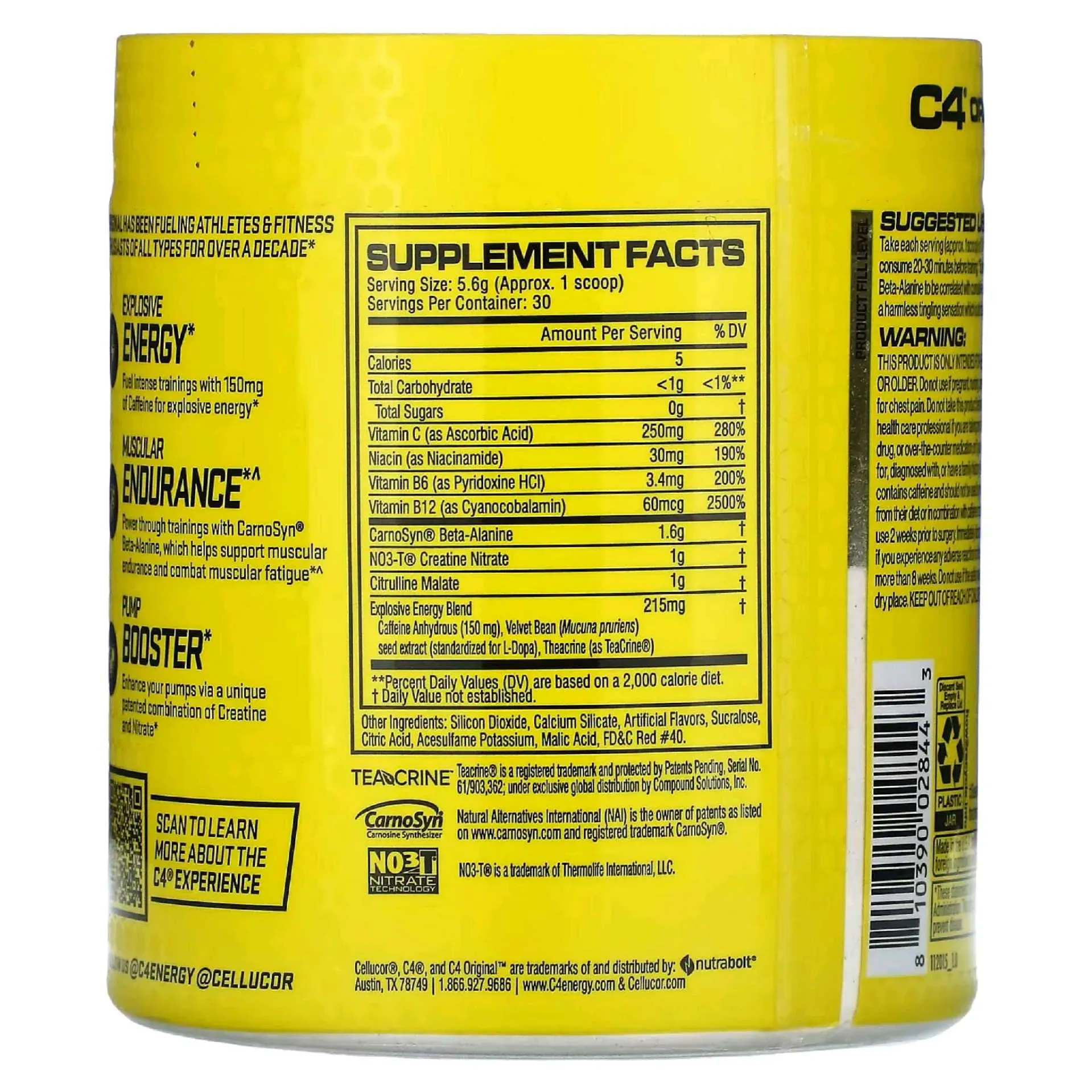 C4 Original es uno de los pre-entrenos más populares del mundo. Está diseñado para aumentar la energía, la concentración mental y la resistencia física antes del entrenamiento. Su fórmula combina cafeína, beta-alanina y otros ingredientes que favorecen el rendimiento atlético.