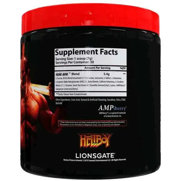 Insane Amino es un suplemento de aminoácidos BCAA (2:1:1) diseñado para mejorar la recuperación muscular, reducir la fatiga y prevenir la pérdida de masa muscular después del entrenamiento. Esta versión Hellboy Amino, incluyen estimulantes como cafeína para aumentar la energía y el enfoque. Se puede...